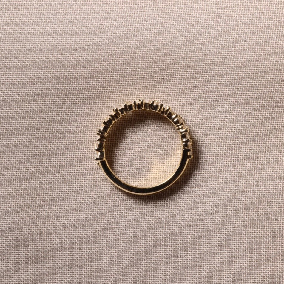 繊細なゴールドのアームに、マーキス&ラウンドカットのダイヤモンドをリズミカルに並べ、指先に軽やかなきらめきを添えます。