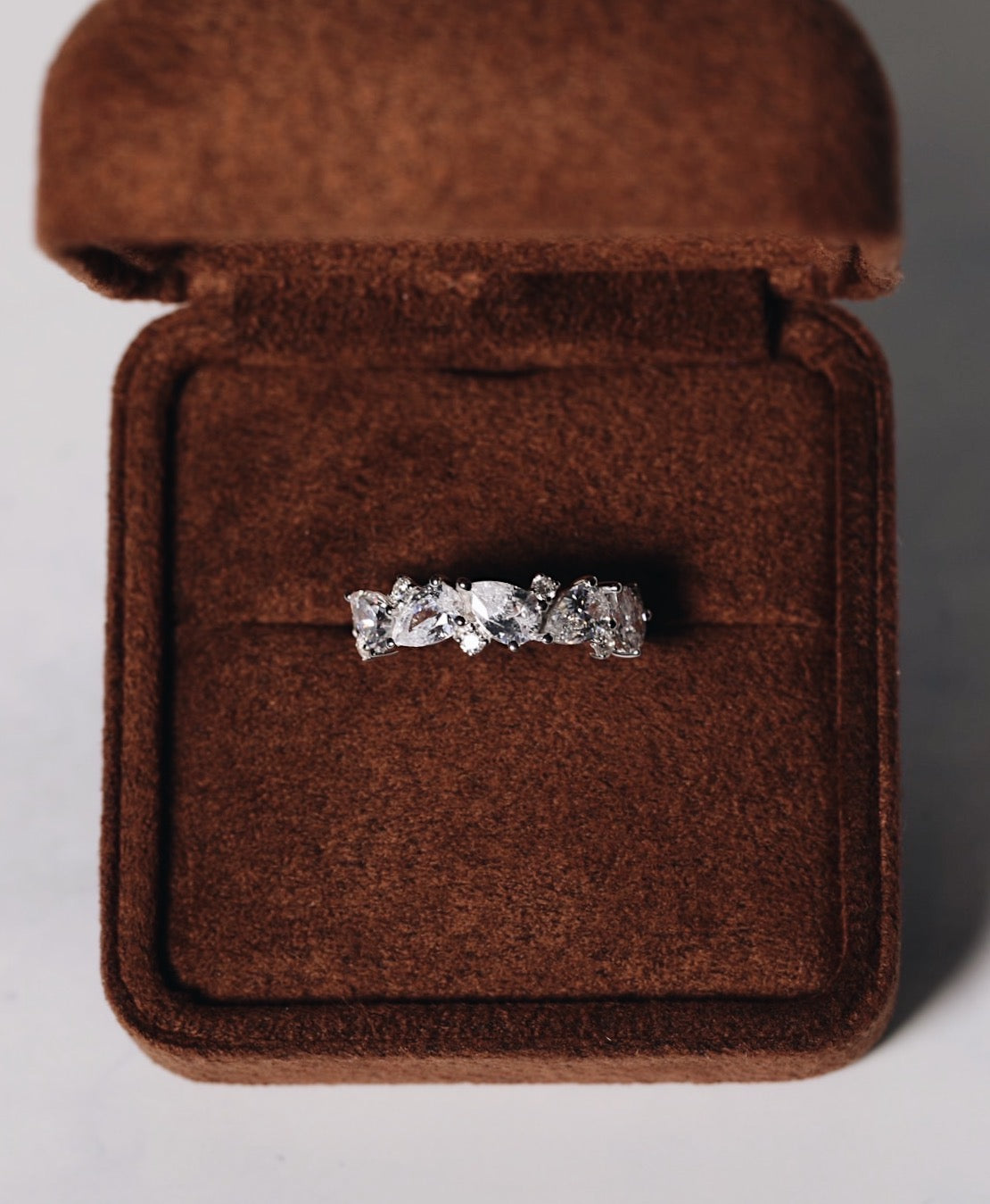 ペアシェイプならではのしなやかなフォルムが、装着したときの指のラインに自然に寄り添います。