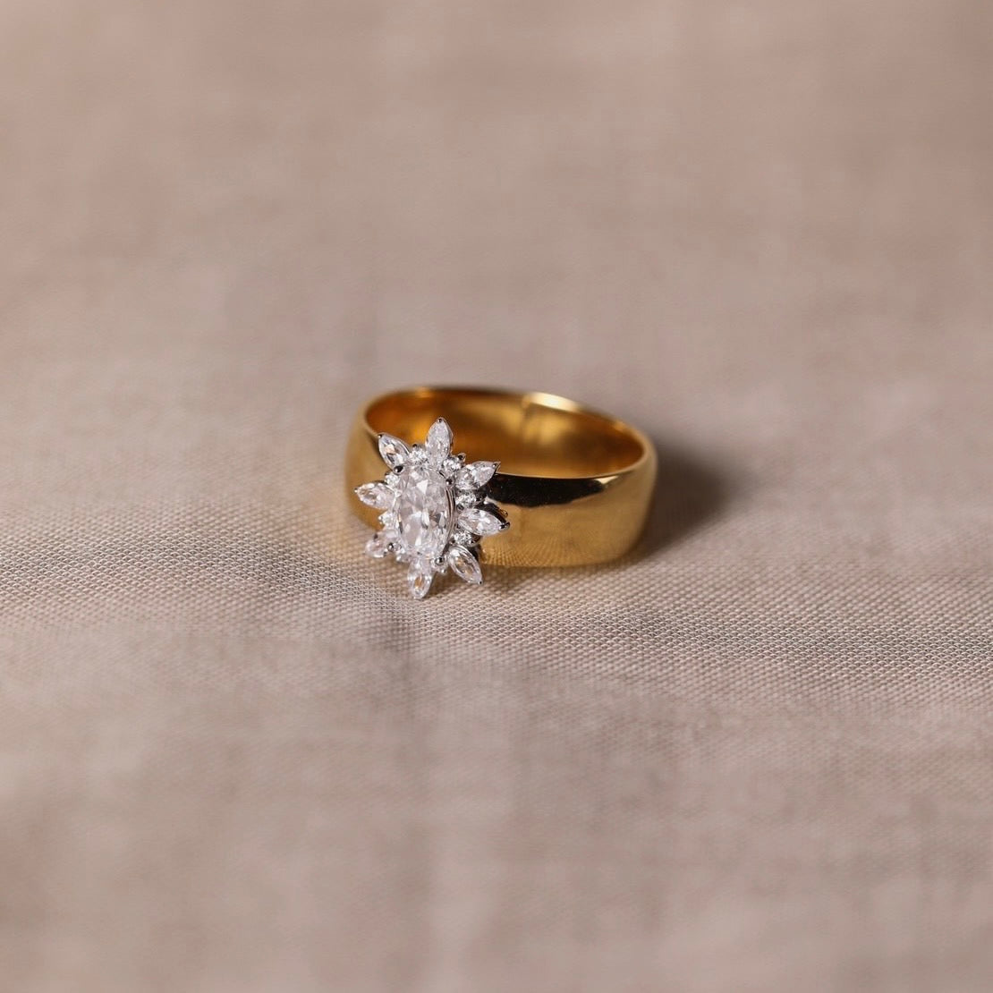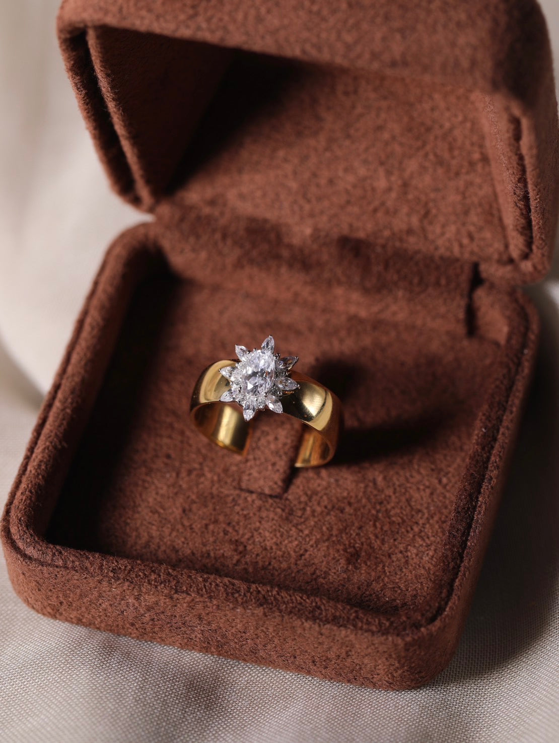 〈K18・プラチナ〉Starlily6×4 ワイドアームリング〈VR117〉
