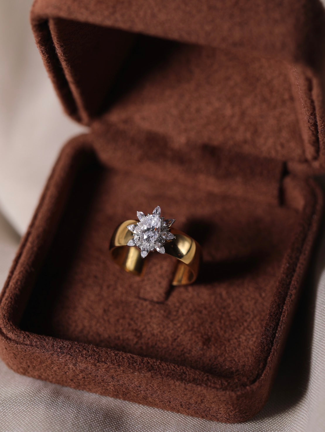 花びらのように繊細に広がるダイヤモンドが、まるで夜空に咲く星の花。