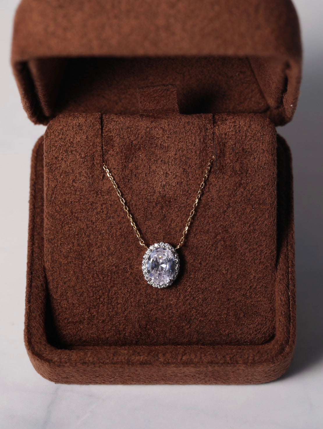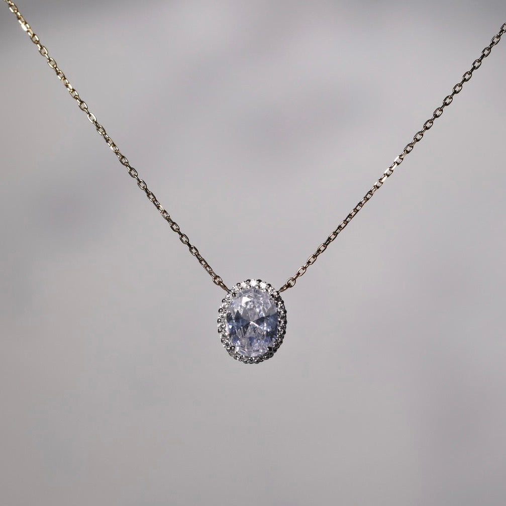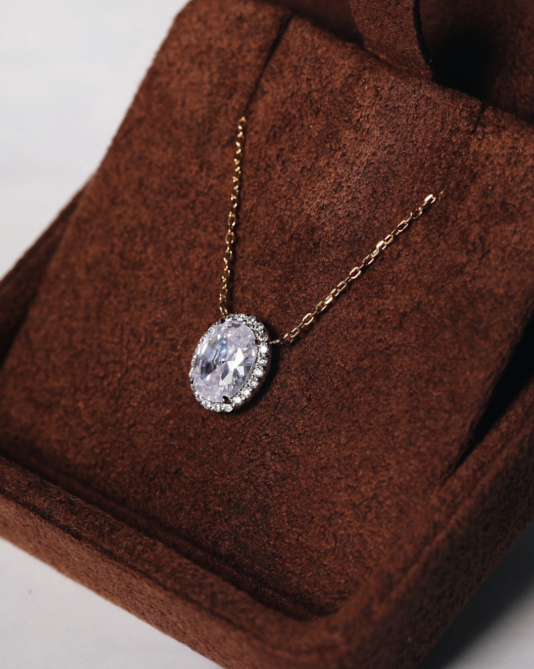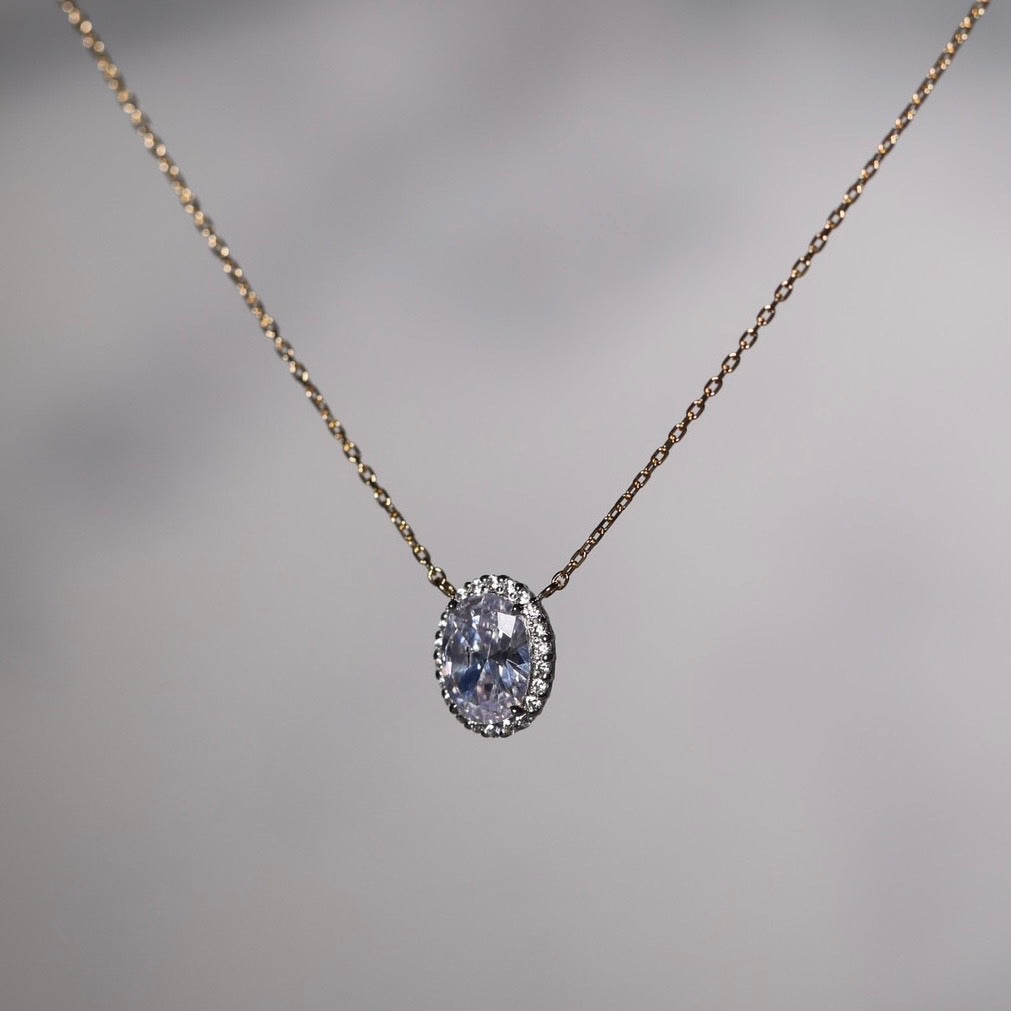 〈K18・プラチナ〉オーバル取り巻き ダイヤモンドネックレス〈VN011〉