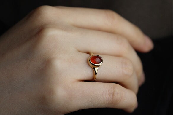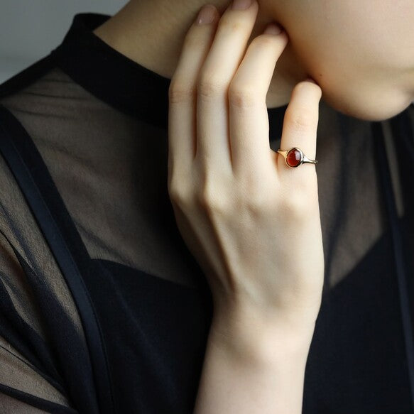 金属部分は丁寧に研磨を施し、石同様に、石枠までもつるりと気持ち良いなめらかな印象になるよう仕上げています。