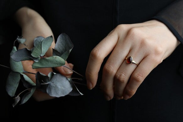 〈K18・プラチナ〉ヘソナイトのカボションリング slim signet<VR071hes>