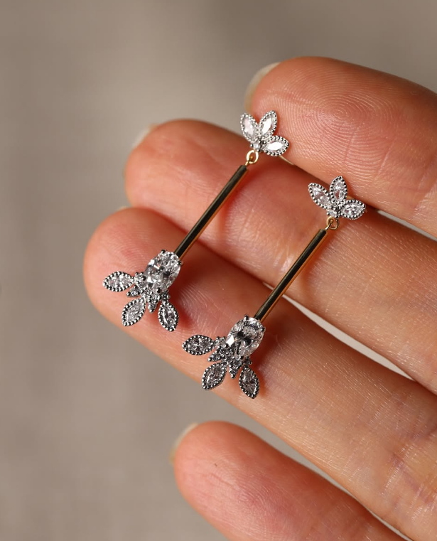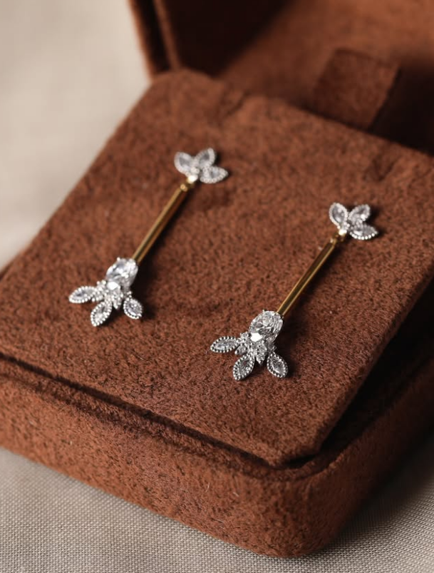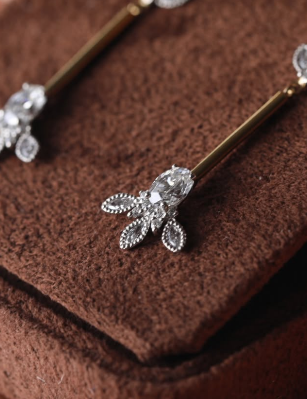 揺れ動くたびに美しくきらめく、スティックタイプのピアス。