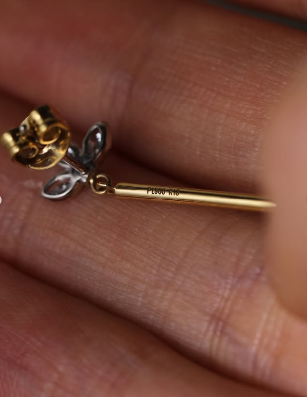 スティック部分はK18、石枠にはプラチナを使用したコンビカラーが、耳元に上品な品格を添えます。